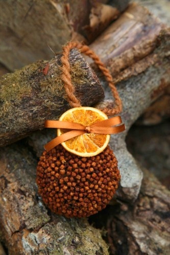 Autrefois, les pommes d’ambre se réalisait en couvrant entièrement l’orange de clous de girofle jusqu’à ne plus voir la peau de l’agrume.