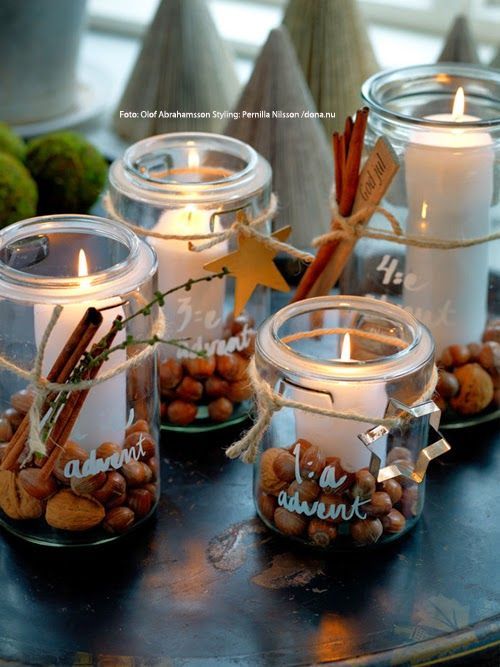– 4 petits pots en verre type pot de crème dessert (pour y mettre les bougies)