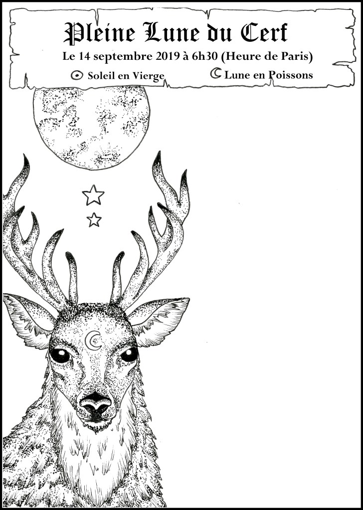 Comme promis, vous trouvez dans cet article une planche de dessin pour illustrer vos journaux et (ou) livres des ombres pour cette pleine lune du Cerf accompagnée d’un petit rituel (vous pouvez bien évidemment l’utiliser tel quelle ou vous en inspirer pour créer votre propre rituel… faites vous confiance 😉 )